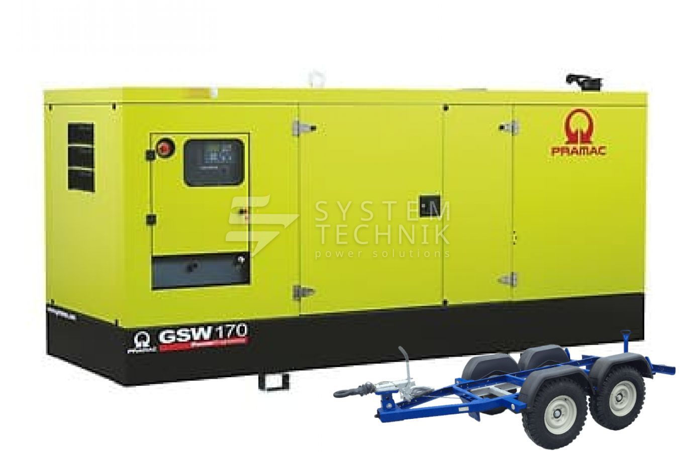 - Дизельный генератор Pramac GSW 170 I В кожухе на прицепе