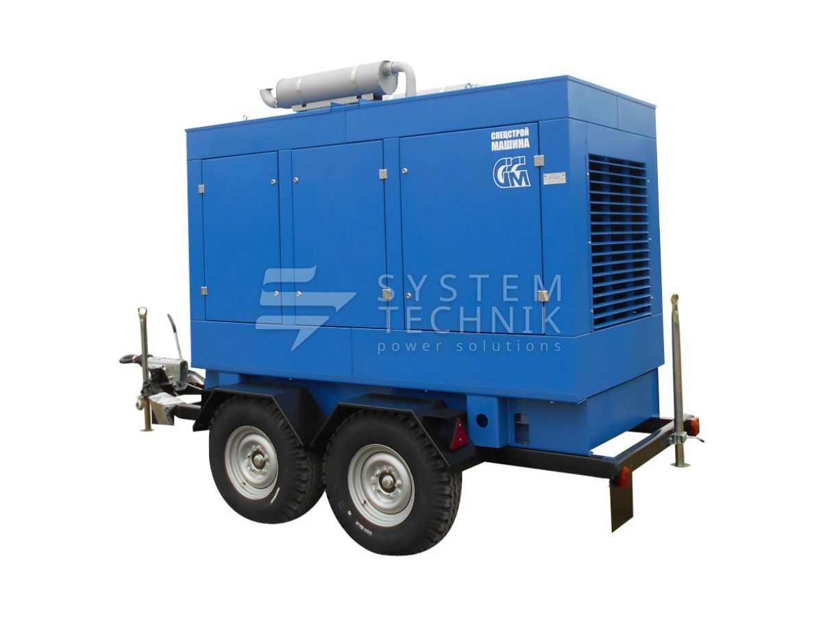 - ССМ ЭД-200-Т400-1РКМ2 в шумозащитном кожухе на шасси на прицепе