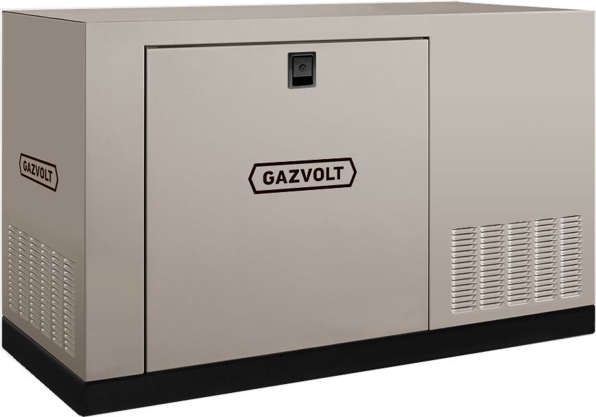 Трехфазная газовая электростанция в шумозащитном кожухе Gazvolt 50T32 в кожухе с АВР изготовлена на базе двигателя Cummins 6BT5.9-GG с воздушным охлаждением. Генератор предназначен для организации автономного электроснабжения домов, небольших коммерческих, социальных и бытовых объектов.